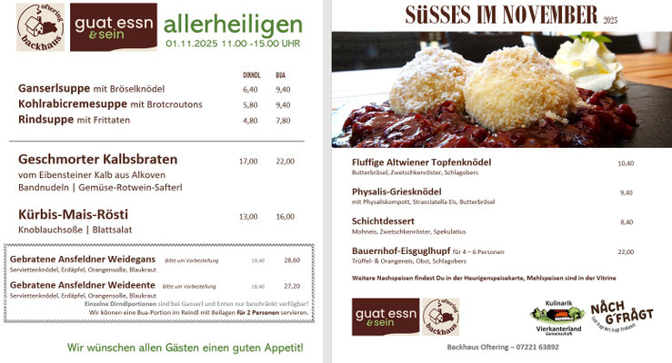 Die große Speisekarte "Guat essn & sein" NEU ab 8.10.2025