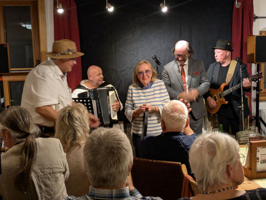 Die Bilder vom letzten Stammtisch sind halt Handyfotos – die Schärfe lässt wegen dem schon fehlenden Licht zu wünschen übrig. Aber der Anlass ist – finde ich - eigentlich sensationell. Und auch unscharfe Bilder können sehr wertvoll sein 😊.