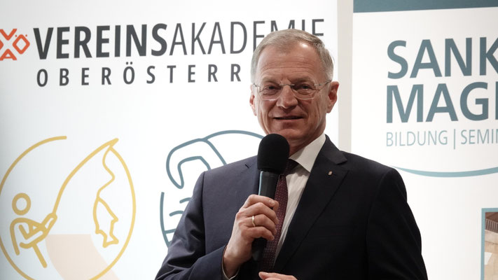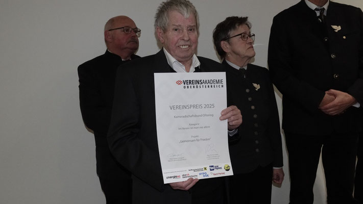 Heuer konnten sich die Besucher*innen von den Bemühungen des Kameradschaftsbundes Oftering überzeugen, Friedensbewusstsein zu vermitteln. Denn alles, was für uns normal ist, ist zur Selbstverständlichkeit geworden. Dabei bedarf Frieden ständiger Aufmerksamkeit, im kleinen Kreis wie auch weltweit. Die vereinsübergreifende Bewusstseinsarbeitsarbeit des Kameradschaftsbundes Oftering ist für Jung und Alt gedacht. So konnte man anhand von vier großen Fotocollagen sehen, wie sich Kinder, Senioren, die Bevölkerung sowie auch die Partnervereine aus Bayern aktiv am Geschehen beteiligen. Präsident Hüttmayr unterstrich mit seinen Grußworten die Wichtigkeit der Friedensarbeit, das sich Beschäftigen mit Kindern, Jugendlichen und Bevölkerung. Besonders hervorgehoben wurde die Vorreiterrolle des Ofteringer Kameradschaftsbundes.