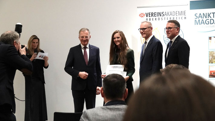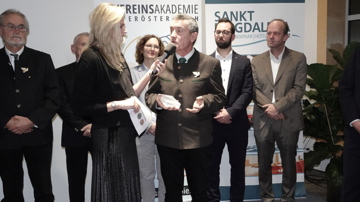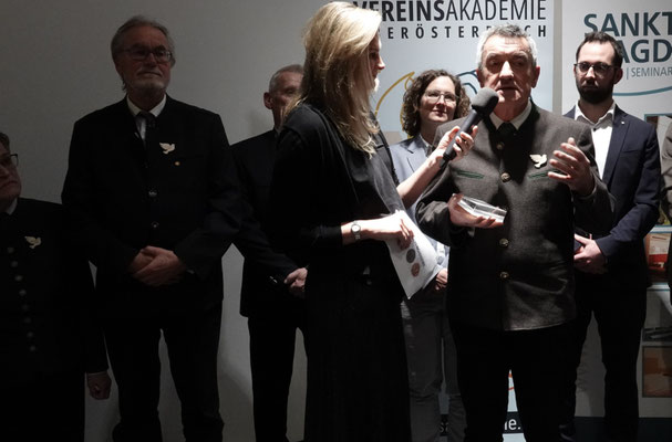 Diese begehrte und hoch verdiente Auszeichnung wurde durch Bezirksjägermeister Christian Pfistermüller, Jagdleiter Thomas Reckendorfer sowie der Bürgermeisterin Margit Angerlehner überreicht.